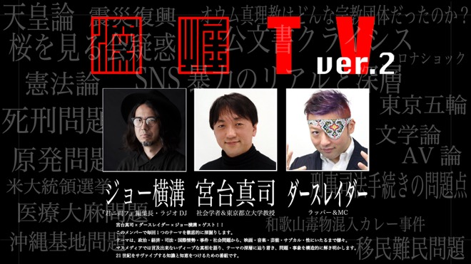 レギュラー:宮台真司(社会学者)、ダースレイダー(ラッパー)、ジョー横溝(司会)