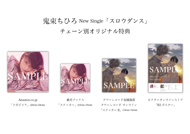 また、シングルのチェーン別オリジナル特典として予約・購入者に先着で、Amazon.co.jpでは「メガジャケ(初回限定盤/通常盤共通:通常盤ジャケット絵柄)」、楽天ブックスでは「ステッカー(通常盤ジャケット絵柄)」がプレゼントされるが、ビクターオンラインストアでは丸木戸マキ書下ろしイラストとなる初回限定盤ジャケットが際立つ「B2ポスター」、タワーレコードでは「ステッカーB(通常盤ジャケット絵柄)」が追加でプレゼントされることが決定。それぞれの特典絵柄も公開されている。