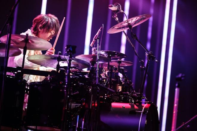 「Driver‘s High」「HONEY」「READY STEADY GO」とアップテンポなナンバーを畳み掛け、猛スピードで駆け抜けていった終盤。まったくパワーの衰えることのないyukihiroの強靭なドラミングには驚嘆。小型ドローンがメンバーに接近しながら飛び回り、臨場感溢れる映像を捉えていたのも盛り上がりに加勢した。