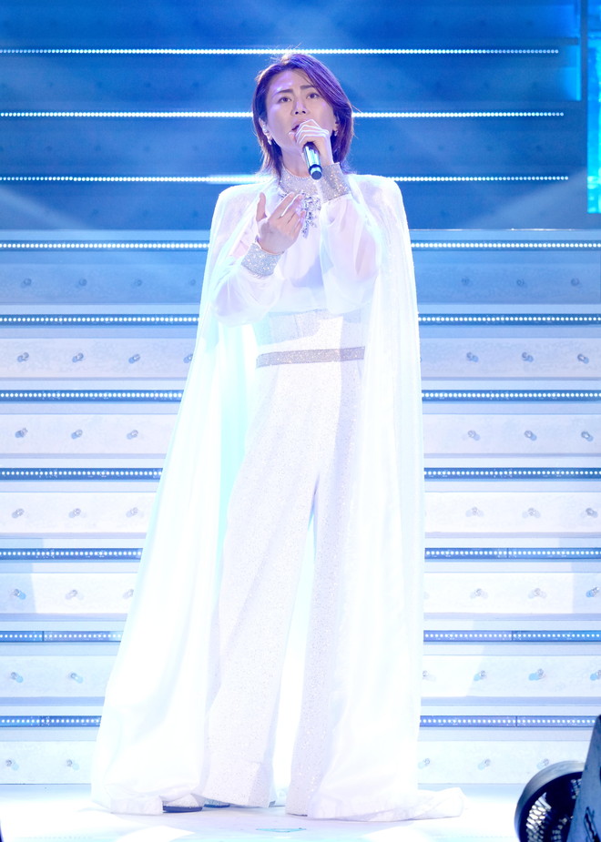 そして、アマビエをイメージした青いコスチュームで「大丈夫 2020」をはじめ、「きよしのズンドコ節 2020」「星空の秋子」、黒のタキシード姿で「母(Forum ver.)」「残雪の町」「櫻」、新曲「南風」、同カップリング曲「たわむれのエチュード」を披露。
