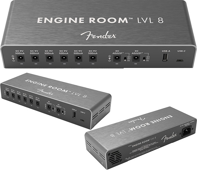 フェンダーより、エフェクトペダルにクリーンで独立した電源を供給するパワーサプライが登場。「Engine Room」3機種が2月1日より順次発売される。