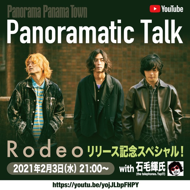 Panorama Panama Townが新曲「Rodeo」リリース当日の2月3日、サウンドプロデューサーを務めた石毛輝(the telephones / Yap!!!)を迎えてYouTube特別番組を配信することが明かとなった。