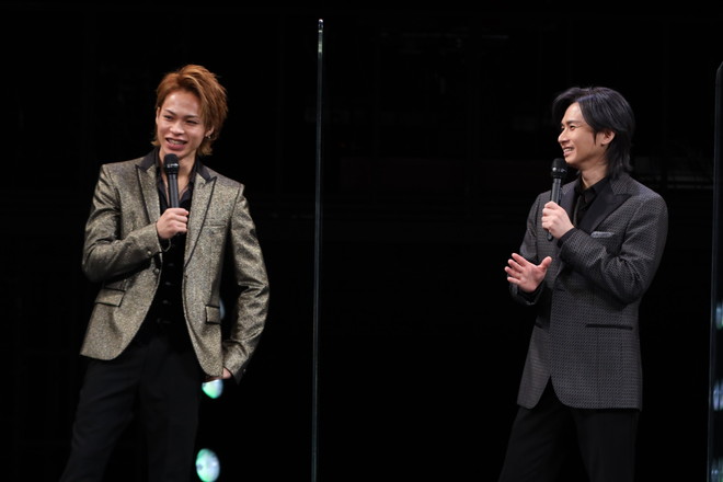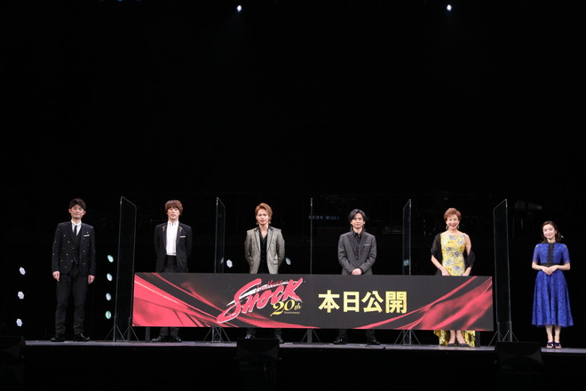 今回の舞台挨拶では、2000年から20年にわたりミュージカル『SHOCK』が上映されてきた帝国劇場から、全国の映画館に向けてライブ配信が行われた。