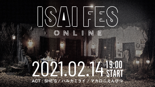 マカロニえんぴつ、SHE’S、ハルカミライの3組が出演するオンラインフェス<ISAI FES>が2月14日(日)に開催される。