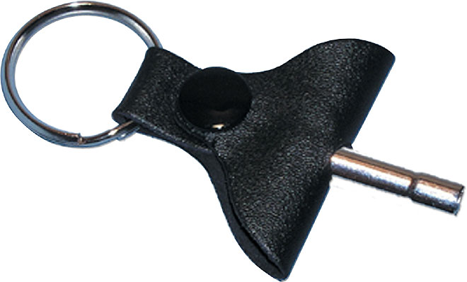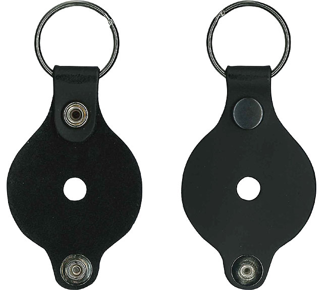 「IA-8」は、一般的なドラムのチューニング・キー(別売)を収納し、キー・ホルダーなどに取り付けられるキー・リング。耐久性のあるブラック・レザーを使用し、金属製のホックで留めるシンプルな構造となっている。