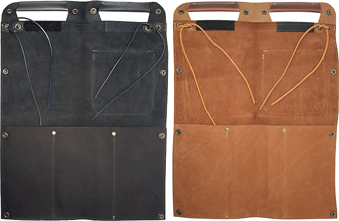 スティックを格納する内部ポケットは3つに仕切られており、収納力も十分。上部のハンドルは耐久性のあるレザーを使用し、型押しのLMロゴが入った外部ポケットは小物を入れるのに重宝する。また、プレイ時に展開してフロア・タムに括りつけるためのレザー・レースが付属する。ブラックとブラウンの2カラーをラインナップする。