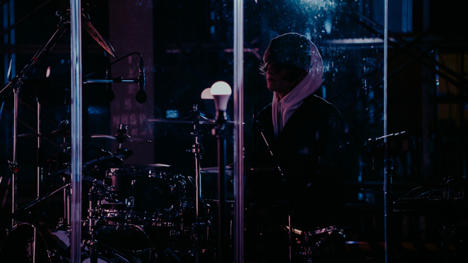 その後のMCでは、舞台が新宿歌舞伎町のど真ん中、ミラノ座跡地の工事現場であることがikuraの口から語られた。現在は通常立ち入り禁止だが、将来劇場となる予定のこの場所で、一足先にライブをするというYOASOBIならではの遊び心が、会場選び、そしてライブタイトルの“KEEP OUT THEATER”にも込められているようだ。時折視聴者からのコメントも拾いながら、生配信の醍醐味でもあるファンとのコミュニケーションを楽しんでいる様子も見て取れた。「二人の別れの朝を描いた曲です」と少し落ち着いたトーンで紹介された曲は4th Single「たぶん」。続く「ハルカ」でもikuraの優しく包みこむような歌声で聴く者を魅了する。小説を音楽にするというユニットのコンセプト通り、楽曲によって見せる世界観が異なるところもYOASOBIの魅力の一つである。