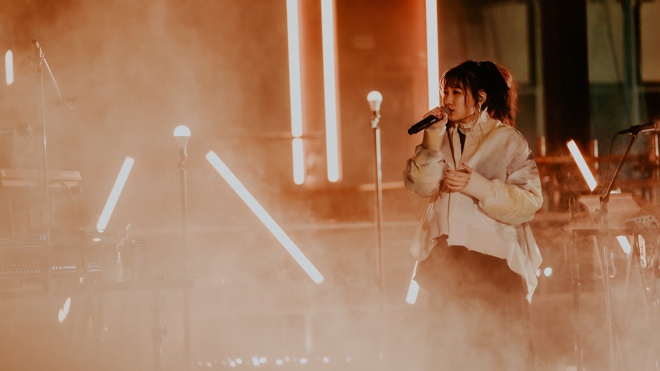 「画面の向こうの皆さん、ぜひ一緒に盛り上がっていきましょう!」というikuraの軽やかな呼びかけとともに続けて奏でられたのは、3rd Single「ハルジオン」。ストリーミング再生1億回を突破しファンからも根強い人気を誇るこの楽曲も、バンド編成だとまた一味違ったグルーヴを感じさせた。