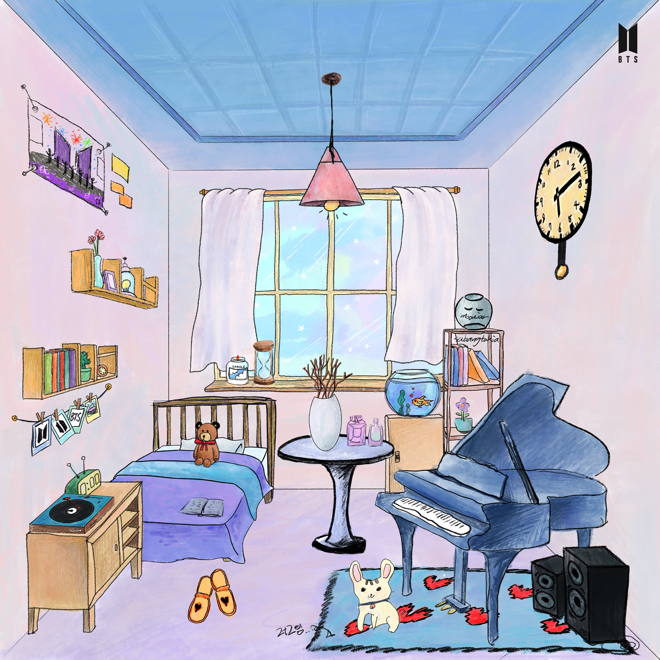 最後に“ARMYの部屋”に加わったピアノについて、以前、ライブ配信などで自身の演奏風景を公開したこともあるJINは「機会があればもう一度挑戦してみたい楽器なのでARMYの部屋に置いてみました。いつかARMYの皆さんの心の琴線に触れる曲を演奏してみたいです」と解説。そのそばに描かれた子犬については「子犬は見ているだけでも可愛いし、存在そのものが癒されませんか? 名前は“バンタン”にしたらどうでしょう」と語り、「皆さんの日常に少しの癒しになれば嬉しいです。 今日大変なことがあったのなら、僕たちに話してると思ってバンタニにすべて打ち明けてみてください」とコメントしている。