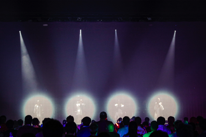メンバー4人の息の合ったクールなシンクロダンスから「こだま」を披露。続く「BURNING FESTIVAL」、「ROSE FIGHTERS」ではメンバーがステージ上を縦横無尽に動き回り、底抜けに明るいパフォーマンスを披露した。