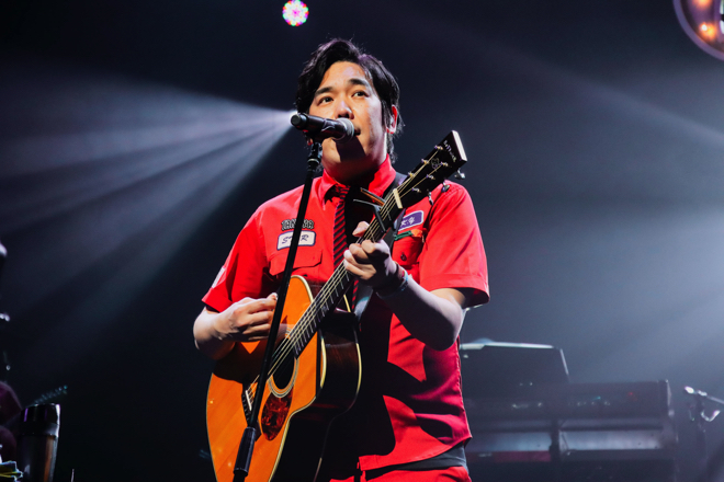 開演時刻の19時、大橋卓弥、常田真太郎を含む9人が舞台に現れた。1年前と同じメンバーが、当時と同じ赤の衣装で定位置に着く。「ファイナルです。やっとファイナルです!」(大橋)、「忘れ物を取りに熊本へ」(常田)と語るように、冒頭から感無量の空気に包まれる。