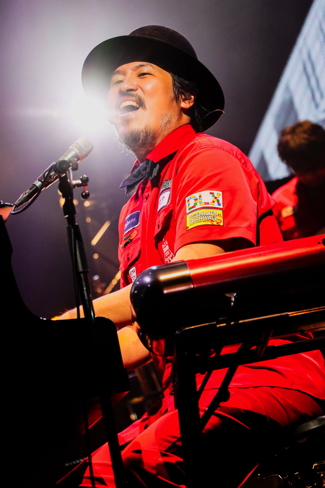 今回の公演は通常と少し変わった部分があった。それはこのツアーが1年以上前に行われたもので、すでに映像作品としてリリース済という点である。つまりセットや曲順などはほぼネタバレした状態なのだが、それでも観客を引き込んでいくのがスキマスイッチである。いま歌いたい曲を新たなアレンジで披露する<POPMAN’S CARNIVAL>のコンセプトに則って、質の高い演奏を聴かせていく。中でも「冬の口笛」「雨待ち風」といった楽曲は、やっと実現した熊本での時間を慈しむように、いつも以上に優しいトーンで歌われた。また、「星のうつわ」は圧巻のダイナミズムを表現し、ライブのひとつのクライマックスとなっていた。後半はアップテンポの楽曲を続け、「全力少年」では声を出せない客席とコール&レスポンスの代わりに手拍子レスポンスで一体感を創り出した。