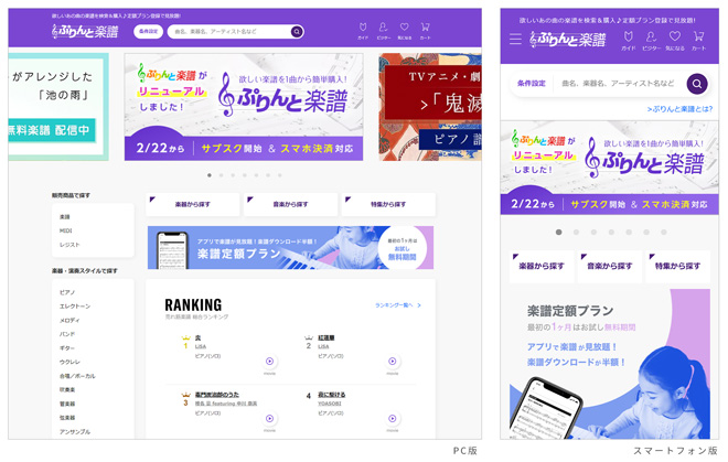 ・定額プラン:アプリで楽譜が見放題になるサービス。月額 990円/480円(ともに税込)。