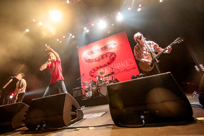 アルバム『MUD SHAKES』最後の曲「かまわないでくださいブルース」でライブ本編は終了。鳴り止まない拍手のなか、甲本は「1回引っ込もうかと思ったんだけど、めんどくせえよな。オマケやります! 今年最初のライブ、とっても楽しかった! 聴いてくれ!」と「エイトビート」「ギリギリガガンガン」、そして「やる事はわかってる 立ち上がる 立ち上がる」という歌詞が胸に突き刺さり、鼓舞される「ナンバーワン野郎!」という必殺の3曲を披露。凄まじいスピード感、琴線に触れまくる歌、熱気を帯びた爆音。これぞザ・クロマニヨンズ!と快哉を叫びたくなる素晴らしい光景だった。