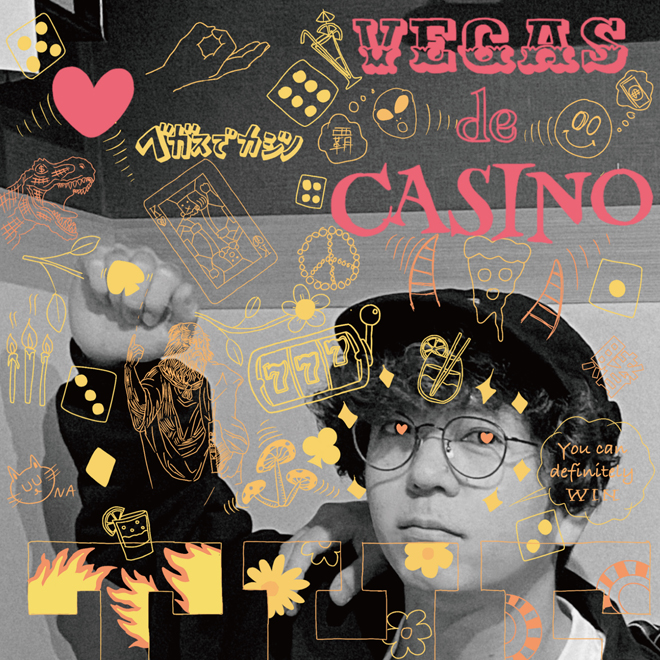 さらに、現在受注受付中のデモCD「ベガスでカジノ」のジャケットも公開された。「ベガスでカジノ」はギタリスト新井弘毅のギタープレイが随所に堪能できる楽曲で長尺のギターソロパートが2回あり、それぞれのギターソロに「フィーバーソロ」「ジャックポットソロ」という名前が付いているとのこと。CDジャケットはその新井をフィーチャーしたデザインになっている。なお、このデモCDは2月28日(日)までの期間限定受注販売だ。
