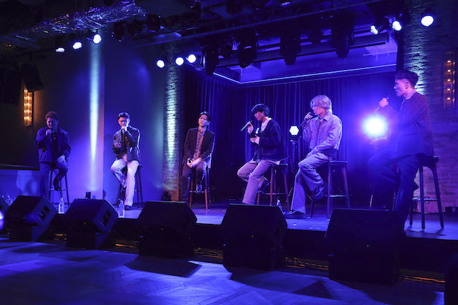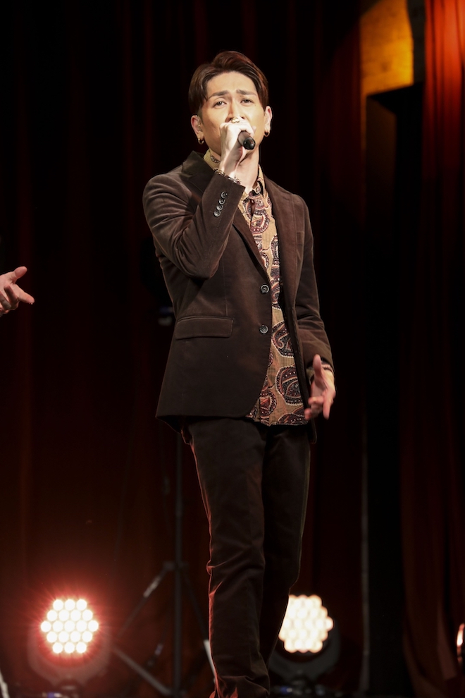 続く「Just The Way You Are」で真っすぐな愛情を歌った後、MCに入り「CL配信では初のオンラインライブ“TRUE LOVE”、皆さん参加していただきありがとうございます」とYUICHIROが言い、全員が感謝を伝えた。そこからは椅子に腰かけて、バラードタイムに突入。「涙が落ちないように」「SORA~この声が届くまで~」「君じゃない誰かなんて~Tejina~」と、ラブバラードの名曲たちを美麗なハーモニーとともに歌い上げた。