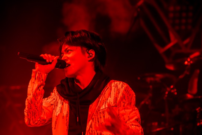 「ヘイ渋谷、踊ろうぜ!」と田澤が叫んで「ペーパードレスレディ」「バニラ」とアップテンポな楽曲を連打する。テンションが高まった田澤は、この後のさらなる盛り上がりゾーンを前に予め「俺、“声出せ!”って言うよ。あ、“心の中でな”みたいな(意味だと捉えてほしい)」と断ってからグルグルと腕を回し、「Sad.」へ突入。ヘヴィなイントロから早くも髪を振り乱し、身体を折り畳むようにして田澤も観客もボルテージ最高潮。スモークと火花が噴出し、焦げるような匂いが漂ってくる臨場感はライブならでは。全員が一心不乱に16分のビートを細かく鋭く刻んで昂っていった。