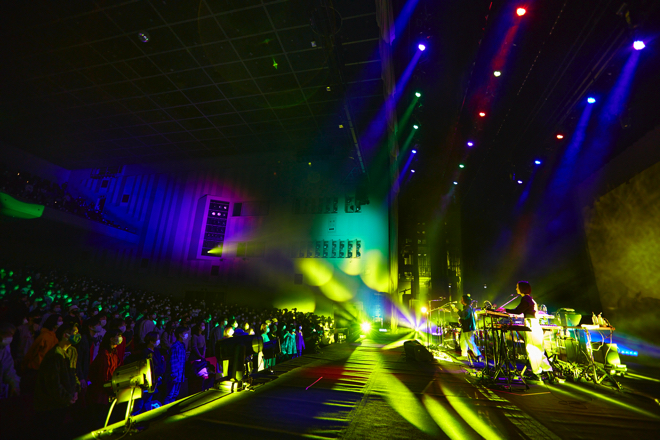 MCでは「初のホールとはいえこんな状況なので、さほどテンションは上がっていない」と飄々と語り、「今日は岡本太郎の110歳の誕生日だそうです。彼がゾンビになって歩いているかもしれません」とファンを公言する岡本太郎について話すと、こちらも初期曲の「ZOMBIE-SONG」を披露。音源ではビートボクサーのREATMOをフィーチャーしていたように、軽快なヒップホップビートが心地よく、さらにはAAAMYYYのラップとコール&レスポンスが楽しい「テレパシー」を続け、ライブ後半はよりディープなゾーンに入っていく。