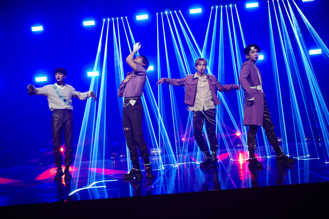 そして、タイトル曲「Don’t Call Me」のパフォーマンス映像になると、先ほどのインタビューとは打って変わって、スタイリッシュな衣装に身を包み、恋にとことん裏切られた主人公が「相手に電話するな!」と警告する歌詞の世界観を見事に表現した。SHINee史上最も振付が多いハードなダンスを10名のダンサーと共に見事に魅せていく。多彩な照明の織りなす演出と火花を散らす特殊効果で、楽曲の世界観を演出し、SHINeeにしか見せることができないパフォーマンスを披露した。