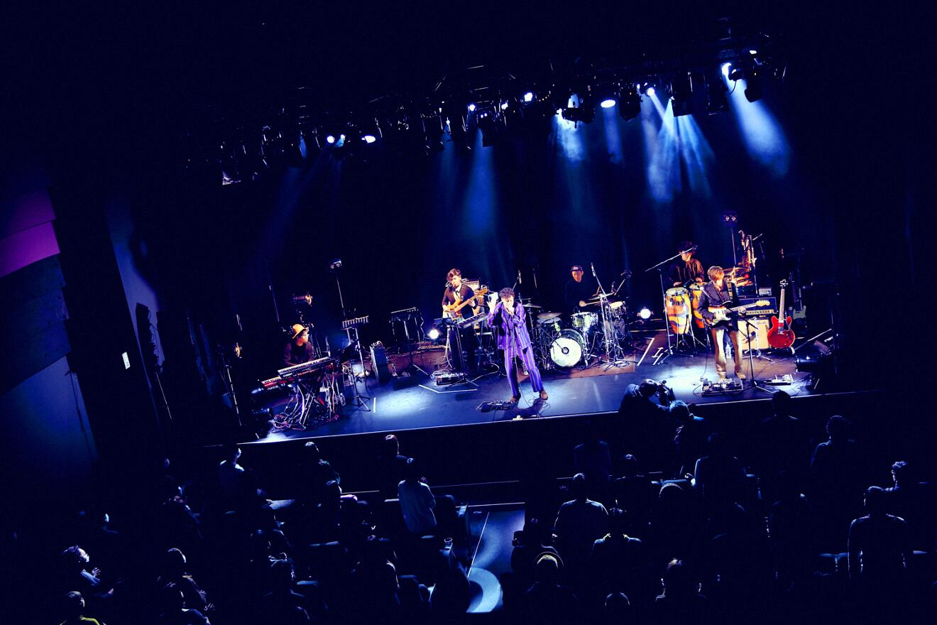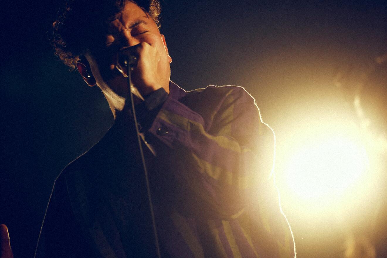 場が和んだところで1月に配信リリースした4thシングル「HORIZON」を披露。TAKKIのフルアコースティックギターのまろやかな音色とSOTAのスモーキーかつウォームな声に加えて清野雄翔(Key)のオルガンが、メロウだが芯のあるこのバラードをホーリーなムードで包んだ。さらにSOTAのファルセットで始まる「I Still」では高低差のあるメロディで切なさを演出。雷の音のSEとライティングでドラマティックに始まった 「Raindrops」ではエモーショナルなボーカルとボイス・エフェクトを効果的に使い分け、歌の主人公の視点が切り替わる感覚が得られた。また、ストリングスやエレクトロニックなサウンドを同期で流しつつ、エンディングに向かってギターソロやピアノが生音の存在感を増していく構成も見事だった。またこの日の選曲の中では最もEDM的なポップ感のある「Never let me」を中盤の最後に配置。ソウル、ファンクやヒップホップをアップデートするだけでなく、現行のポップミュージックを広く視野に入れた楽曲を持つ彼ら。自然なグルーヴに身を任せて楽しめる上に、多彩なアレンジで飽きさせない。
