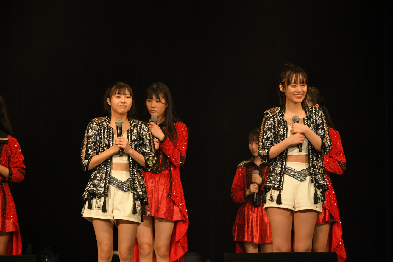MCでのトークコーナー後には、小芝居で日頃とは違う表情を見せてくれる「眼鏡の男の子」を皮切りに「誤爆~We Can’t Go Back~」「ズキュンLOVE」「旅立ちの春が来た」とアップテンポなナンバーを立て続けに披露。研修生ユニットがHip Hopも取り入れつつ軽やかな身のこなしをみせる「BE HAPPY 恋のやじろべぇ」まで一気に駆け抜けた。終盤はふたたび全員がステージに揃っての情熱なダンスナンバー「表参道A5」、続く「青春コレクション」では爽やかにクラップを集め大団円へと向かっていく。