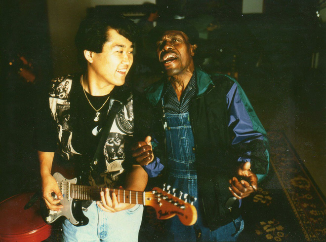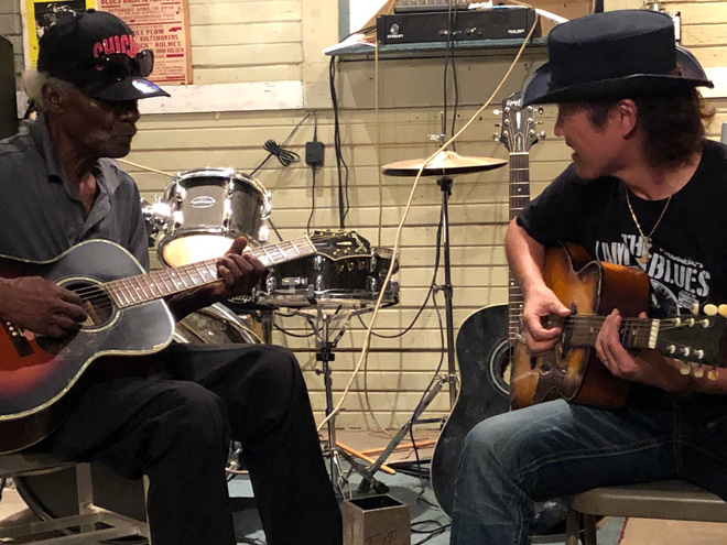 ▲映画『アイ・アム・ザ・ブルース』に登場するBlue Front Cafeでオーナーのジミー“ダック”ホームズとジャム・セッション