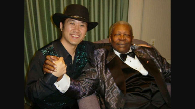 ▲B.B.キングにインタビューする故・桜井ユタカさん(右)と筆者