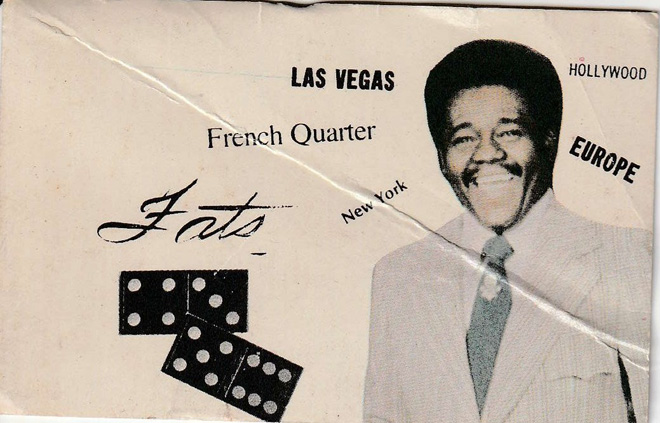 チャック・ベリー、リトル・リチャード、ボ・ディドリーそしてファッツ・ドミノ。この四人は1955年前後のロックンロール黎明期に多くの若者の心を捉えた黒人アーティストである。その一人、ファッツ・ドミノは1974年2月に来日。招聘元からの依頼で、ファッツ日本公演前に幾つかの都内公会堂でプロモ・イベント/フィルム・コンサートのナビゲーターを務めた。ゲストは湯川れい子さんだった。無料でプレゼントありということで各回なかなかの盛況ぶり。ファッツ来日公演に期待が寄せられたが、いざ蓋を開けてみるとコンサートの方の集客は30%ほど。でもファッツはそんな状況を苦ともせず素晴らしいステージを務めあげ観客を大感動させた。そんな一人が故・大瀧詠一ということを最近WEBで知った。プロモーション協力の褒美としてファッツに会わせて頂きミニ・インタビューしたのだった。