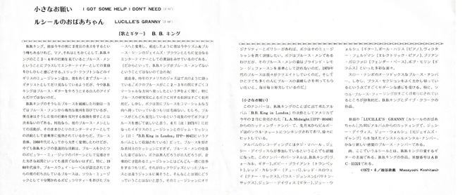 1970年代に入りブルースがぐっとモダン化しロック・ファンからも注目を集めるようになった。我が国ではその一方で、マニアックなブルース愛好者からB.B.タイプのサウンドや白人ロッカーと交流するブルースマンは批判対象となった。小学生の頃からヒット・チャートで育ちジャンルなんてどうでもいい、グッド・ミュージックはグッド・ミュージックというポリシーで音を楽しんでいた僕は(まさに音楽!評論家は音楽を音学にしてしまう、俺は音楽紹介屋だと粋がっていた、モチその基本姿勢は今も同じ、初志貫徹だ)。この1972年夏にリリースされたシングル盤ライナーノーツで僕は御大のUSジャズ誌のインタビューを引用しながら彼の音楽姿勢を記した。それはマニアに向けてのメッセージでもあったのだ。このナンバーではB.B.がジェシー・デイヴィスと共演している。尚、ジェシーのデビュー・アルバムのライナーは僕が担当した。このコーナーでもそのうちピックアップしたいと思っている。
