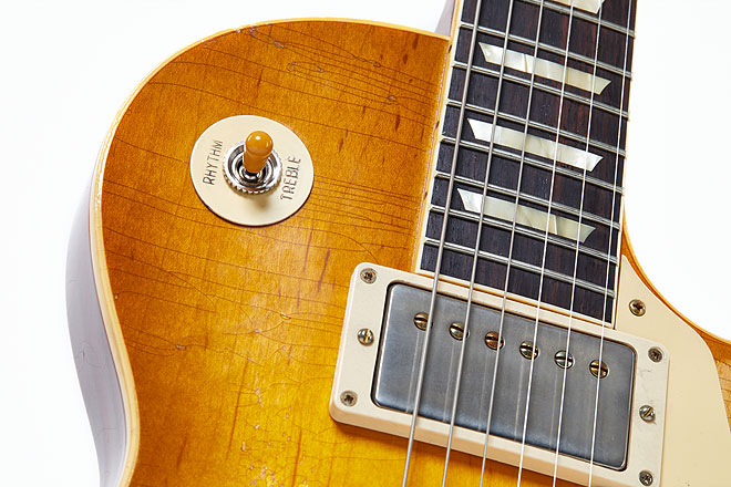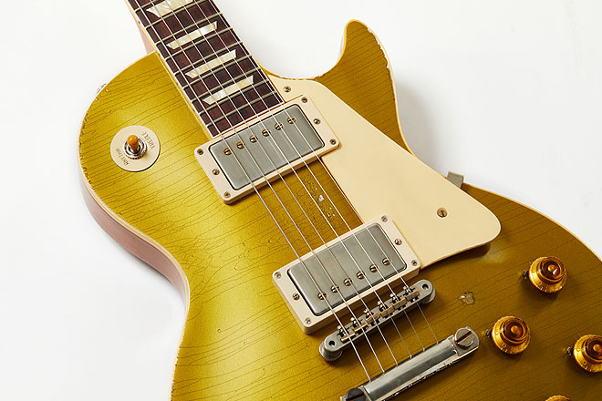 ▲ウルトラヘビー・エイジドの1957 Les Paul Goldtop in Double Gold。