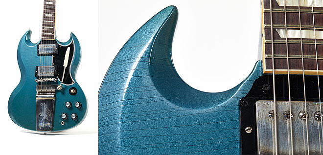 プロギタリストのメインギターとして、ツアー、ギグで酷使されて、剥がれたフィニッシュから木部が露出した状態を再現する最大レべルのエイジング。マーフィー・ラボによるヘビーエイジド・ハードウェアを採用。