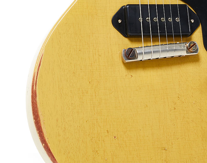 ▲ヘビー・エイジドの1957 Les Paul Junior Single Cut in TV Yellow。