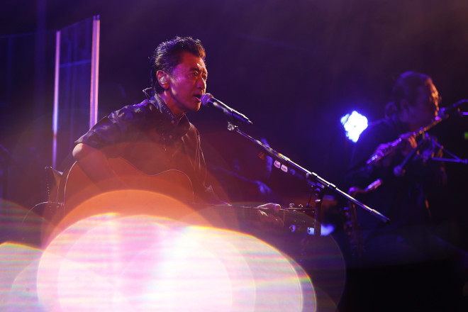 注目はやはり、セットリストということになる。現時点での最新ソロアルバム『がらくた』から、「若い広場」など4曲。ちょうど10年前にリリースされた2枚組の大作『MUSICMAN』から、「月光の聖者達(ミスター・ムーンライト)」など3曲。ほかに「孤独の太陽」「東京ジプシー・ローズ」など、会場の雰囲気に合う渋めのアルバム曲が中心となる中、KUWATA BANDの「スキップ・ビート(SKIPPED BEAT)や、「悲しい気持ち(JUST A MAN IN LOVE)」「真夜中のダンディー」など、シングルヒットで要所を盛り上げる。年越しライブの最後に花火の映像とともに音源だけ披露された「SMILE~晴れ渡る空のように~」が、初めて生演奏で歌われたのも嬉しく、感動的なシーンだった。