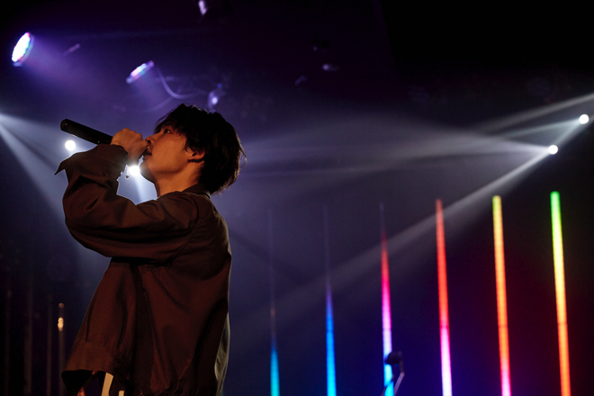 時計が定刻を刺すと、イメージムービーにより本編はスタート。薄暗い照明が会場を包みこむなか、デビュー曲の「LIGHTS UP」によりライブを封切った。始まるやいなや軽やかなステップと伸びやかな歌声で観客を一気に惹きつけていく。顔だけにフィーチャーしない足元や手先を映すカメラワークは、自信の表れといってもいいだろう。12歳のころからエンターテイメントを突き詰めてきた彼だからこそ、指の末端までこだわったパフォーマンスを実現できるのだ。