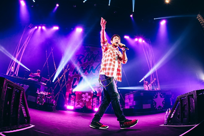 その後は4thアルバム『F』の収録曲「DIVE」から、FUNKY MONKEY BABYS時代の名曲「告白」など幅広いセットリストでしっかりとステージを彩る。「15年前は夢とか希望を歌ってました。15年経った今もこれからも夢や希望の歌をうたっていこうと思います」と未来を見据えて「希望のWooh」で会場全体で拳を突き上げると、1部の本編は「My VOICE」で締めくくった。
