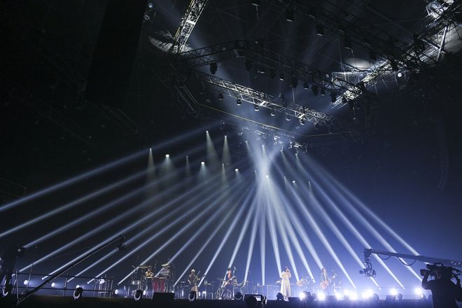 ムービーが終わると、再び視聴者の画面は横浜アリーナへ。15年間の感謝を込めた「ありがとう」、光を巧みに用いたLEDモニターの映像が楽曲のムードをより高めた「きらきらにひかる」、追い風を吹かすようにパワフルで華麗な演奏を繰り広げた「BAKU」と畳み掛け、「じょいふる」ではテンションも最高潮。15周年と掛けて15回連続ジャンプで楽曲を締めくくった。