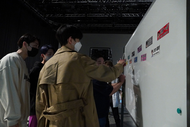 3月某日、本番収録に向けた事前リハーサルが都内にて行われた。JO1メンバーと番組スタッフはこれまでオンライン上で会議を重ねていたものの、実際に対面したのはこの日が初めて。まずはJO1メンバーとの打ち合わせを行い、番組の企画意図について、ディレクターから「皆さんの感情が動く瞬間をたくさん作っていきたいと思っています。たとえ“インパクトパフォーマンス”がうまくいっても、いかなくても、皆さんの気持ちが爆発してほしいなと思っています」と伝えられると、メンバー一同は真剣な表情で話を聞いていた。またこの日は、本番に向けた意気込みインタビューの収録や個別練習も実施。お互いにどのような“インパクトパフォーマンス”を披露するかは本番収録までいっさい知らされないため、メンバーそれぞれが別室で撮影に臨んだ。