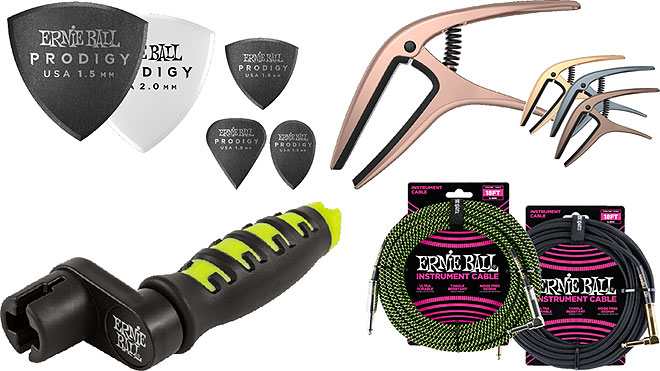 Ernie Ballから新シェイプのピックや快適なグリップのペグワインダー、カポ、ケーブルの新製品が登場
