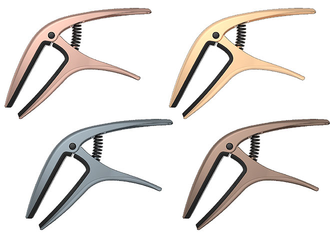 「AXIS CAPO」は、人間工学に基づいたデザインによって、片手でキーをすばやく正確に変更できるカポタスト。フラットな指板、カーブした指板どちらにもフィットするデュアル・ラジアス設計で多くのエレキ・ギターとアコースティック・ギターに対応する。
