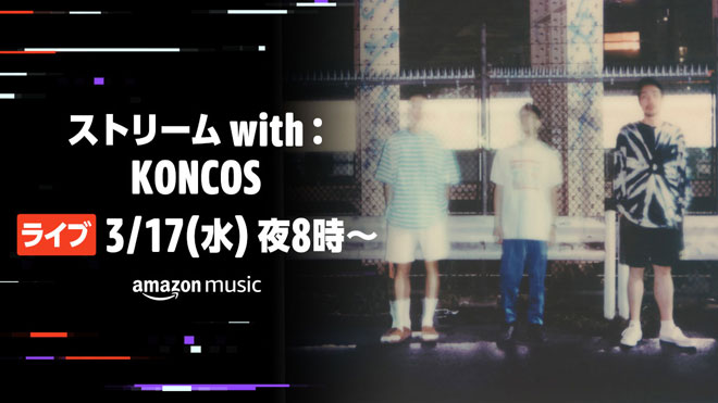 KONCOSが本日3月17日、Amazon Music Japan Channel にて生演奏によるライブ配信『ストリーム with:KONCOS』を行う。本配信は20時よりスタート。アーカイブの配信は予定されていない。