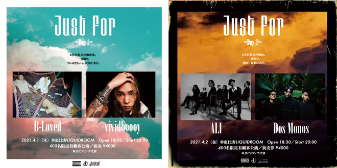 B-Loved×vividboooy、ALI×Dos Monos、幅広い音楽表現をする世代を超えたアーティスト勢を招聘してきたイベント<Just For>が人数限定でリアル開催