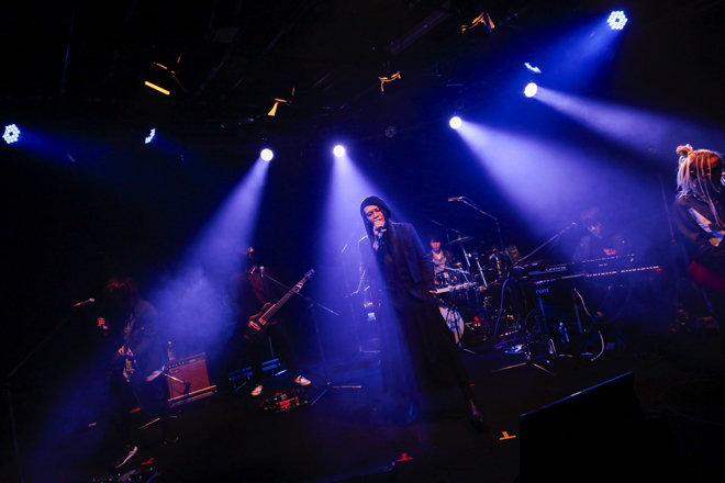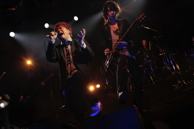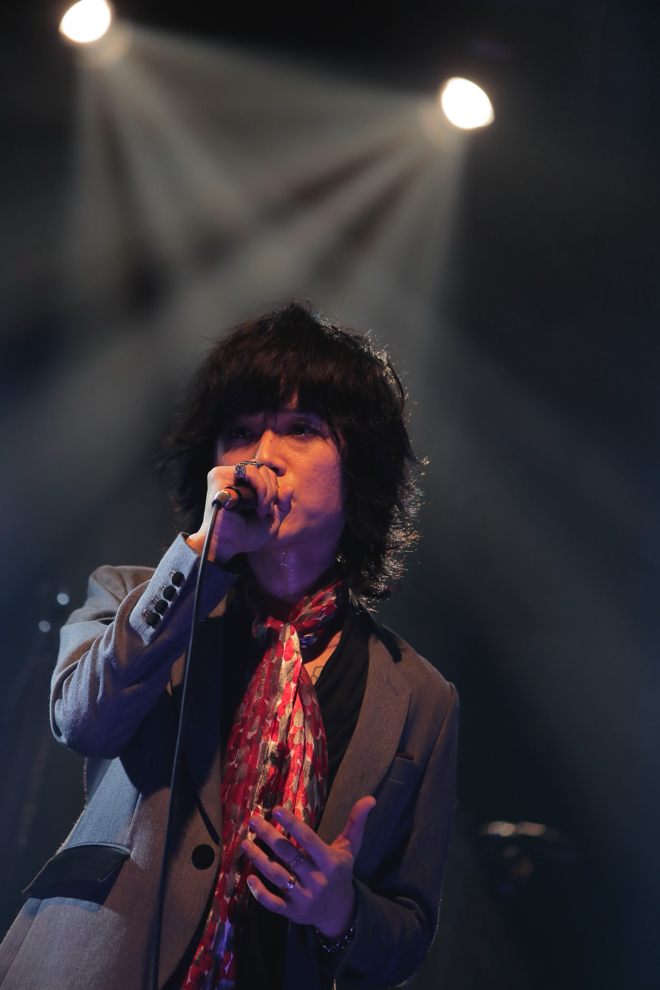 なんでも、水面下ではここ3年ほどをかけて曲作りなどを進めていたそうで、ライヴ演奏についてはこの当日が初だったというのだが、“白塗り”ではない団長がモノトーンの衣装で終始シリアスに歌いあげ、その横で広末慧が華のあるギタープレイを繰り広げていくさまは、とても新鮮なものにも感じられた。まだまだ全貌が晒されたわけではないだけに、この団長×広末慧の今後についてはぜひとも注目していきたいと思う。