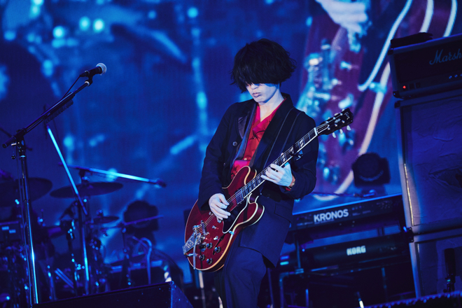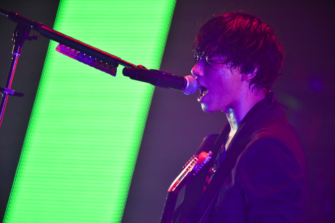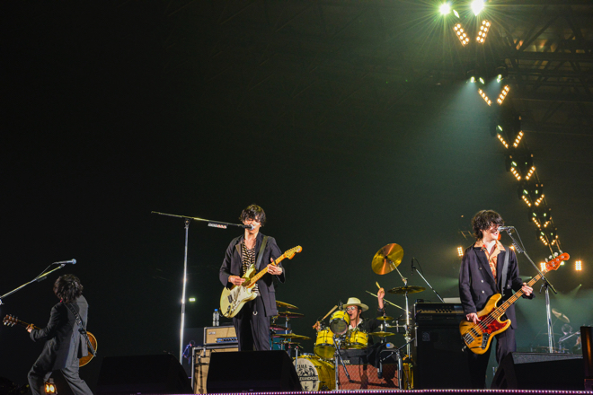 おなじみ「Burger Queen」のSEに合わせて、メンバーそれぞれの人生とバンドのキャリアを振り返るようなオープニング映像が流れる。ステージに立った川上洋平(Vo,G)が「幕張!」と叫ぶ。1曲目として鳴らされたのはファーストアルバム『Where’s My Potato?』のリード曲「For Freedom」だった。磯部寛之のヘヴィなベースライン、白井眞輝の鋭いギターリフ、そしてサポートドラマー・リアド偉武がぶちかます疾走感のあるビートが川上の歌うメロディを前へ前へと急き立てる。眩いライトで照らし出されたフロアで振り上げられる腕、腕、腕。そして地鳴りのような手拍子が鳴り響く。ルール上歓声を上げたり一緒に歌ったりはできないが、そのぶん、体で気持ちを伝えようとするオーディエンスの気合いが伝わってくる。
