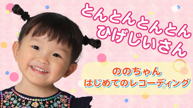 今回、史上初の2歳9か月での配信デビューとなった「とんとんとんとん ひげじいさん」ミュージックビデオは、ののちゃんが人生で初めてレコーディングスタジオで歌ったときの様子を収録。2歳とは思えない歌唱力とリズム感、そしてその堂々とした立ち振る舞いに天性の才能がうかがえる。また、「とんとんとんとん ひげじいさん」に続き、映像配信企画第2弾・第3弾として来月も「いぬのおまわりさん」と「ねこふんじゃった」の配信とオフショット動画を公開予定だ。