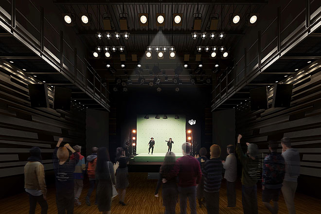 最大収容人数200名(スタンディングの場合)、天井高6m、昇降式ステージを有するスタジオに、音の響きや位置を変化させて質の高いイマーシブな空間演出を実現する最新のヤマハ音場支援システム「AFC(Active Field Control)」を導入。このシステムを活かした参加型のサウンドアトラクション「WONDER FILMING~体感!イマーシブサウンドの世界~」を常設コンテンツとして新たにスタートする。映像コンテンツに連動して音場がリアルタイムに変化するイマーシブ体験を通して、まるでまったく違う空間にいるかのような没入感と、新たな音体験への驚きや発見を提供する。コンテンツのナレーションには、数多くの人気アニメ作品に出演する声優の榎木淳弥氏を起用。そのほか、新たな参加型の体験を今後増やしていくとともに、ヤマハならではの多彩なライブコンサートも実施する。
