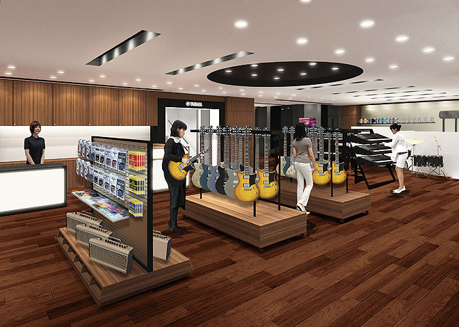 ヤマハブランドのギターとしては国内最大規模の品揃えとなるほか、ドラムやシンセサイザー、ステージピアノなどを豊富に展示し、音楽制作機器やPA機器なども充実したラインアップを揃える。また、グループブランドであるLine 6、Ampeg、Steinbergの製品も取り扱う。フロア内では、ギターやアコースティックドラムを存分に試奏できるスペースを用意。またデモ演奏やセミナー実施のためのコーナーも設ける。