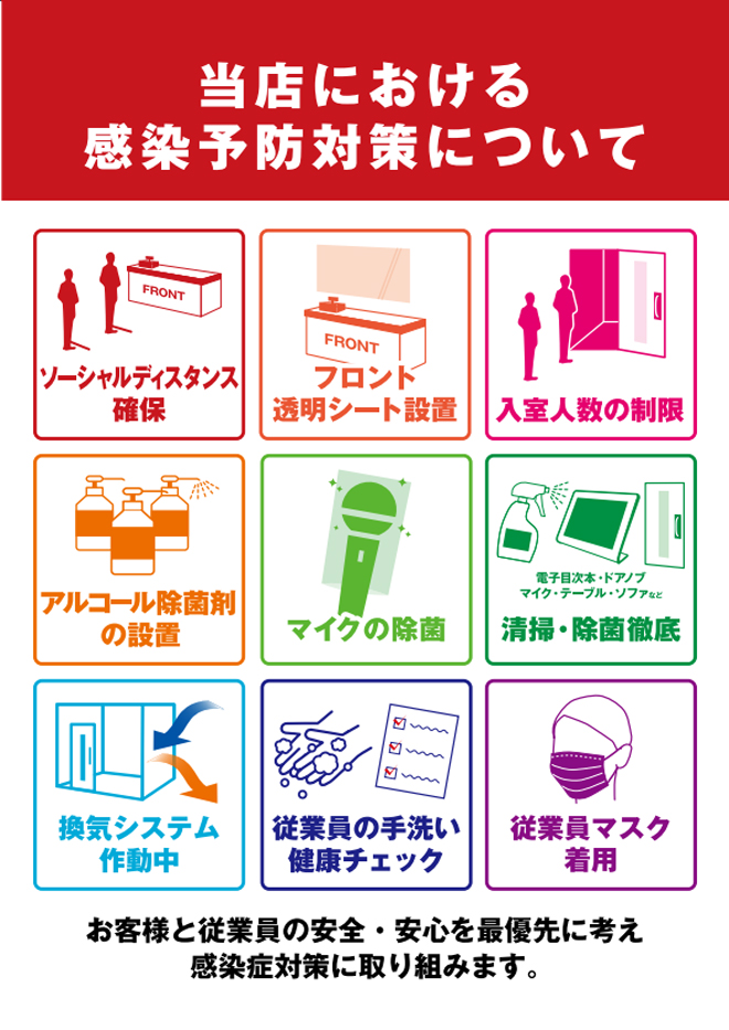 ビッグエコーでは、「お客様と従業員の安全・安心」を最優先に考え、以下の通り新型コロナウイルス感染症対策に取り組んで参ります。