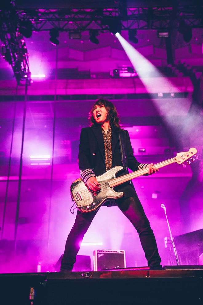 「みんな盛り上がっていこうか? いよいよ、はみ出してしまいましょうか?」と煽った後半戦は、Jのベースが担うグルーヴ、宙高く飛ぶマイクスタンド、飛翔するSUGIZOのギターソロで弾け飛ぶ「ROSIER」から、INORANがセンターでジャズマスターをかき鳴らし、真矢とのセッション的なコンビネーションも飛び出した「TONIGHT」で大団円となった。