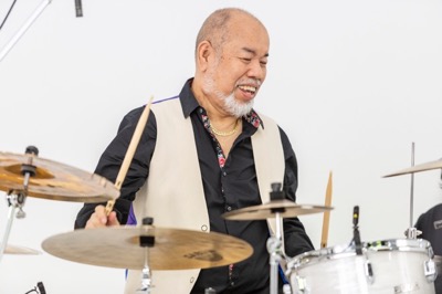 つのだ☆ひろ:もちろん!何の準備もしておりません(笑)。その場のインプロです。僕は若いドラマーみたいに手が速く動かないし、激しく動かしていたら音がうるさいじゃないですか。うるさいのはあまり好きじゃないんですよ、そしてドラムソロが嫌い(笑)。だからドラムソロはあまりやらないんですよ。普段はデジタルの打ち込みなども自分で行う都合上、奏法としてボリュームコントールもすごくするんです。