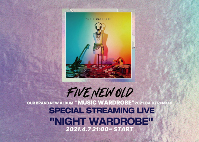 FIVE NEW OLDのオンラインライブ<NIGHT WARDROBE>が、4月7日(水)21時よりワーナーミュージック・ジャパンの公式YouTubeチャンネルで生配信される。